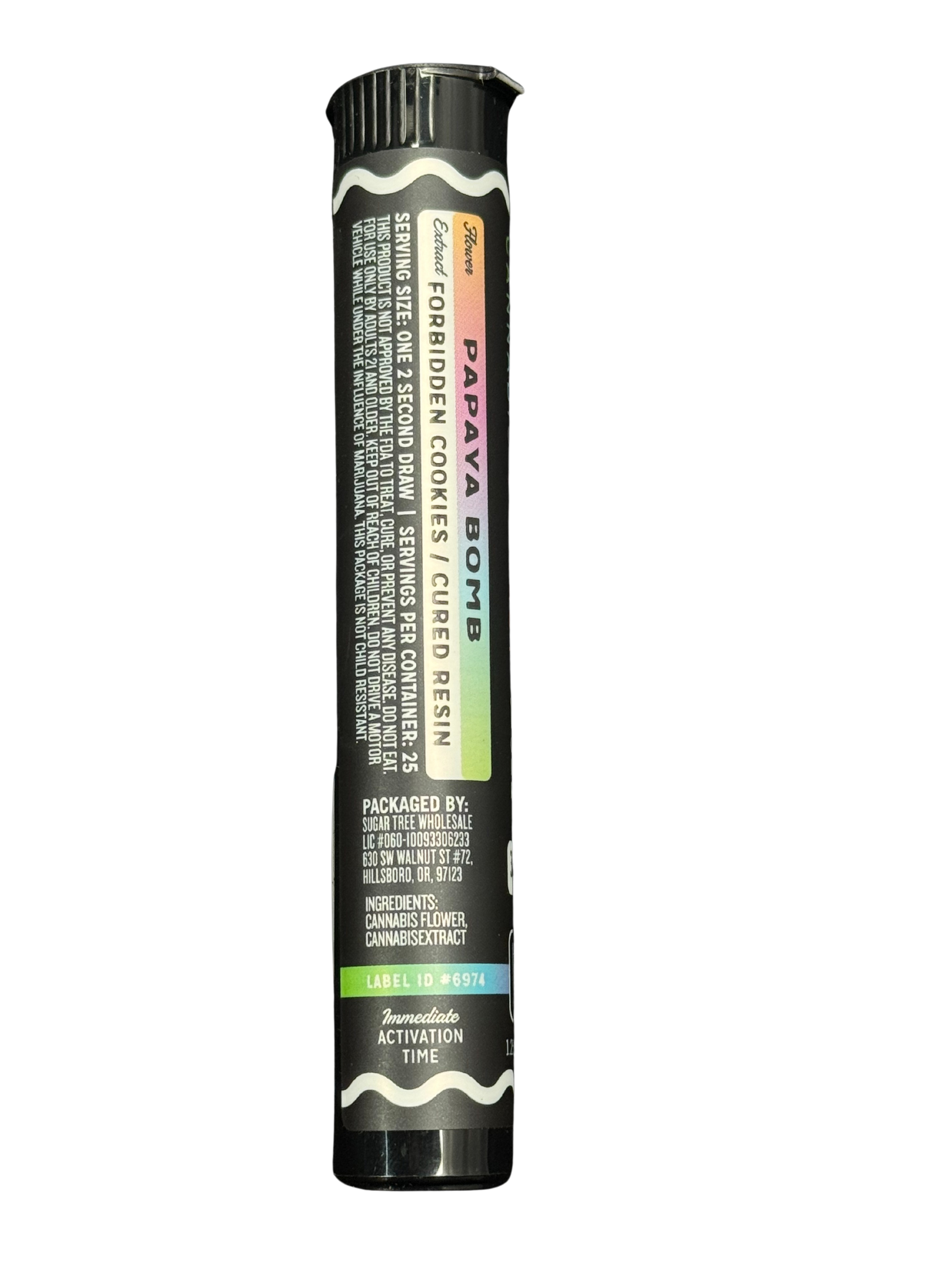 Experience a refreshing island escape with our Papaya-Bomb crossed Infused Pre-Rolls. A flavor that delivers a smooth, burst of papaya layered over aromatic, cured extracts. Sweet, tropical, and delightfully mellow, this pre-roll offers a balanced, yet uplifting experience.